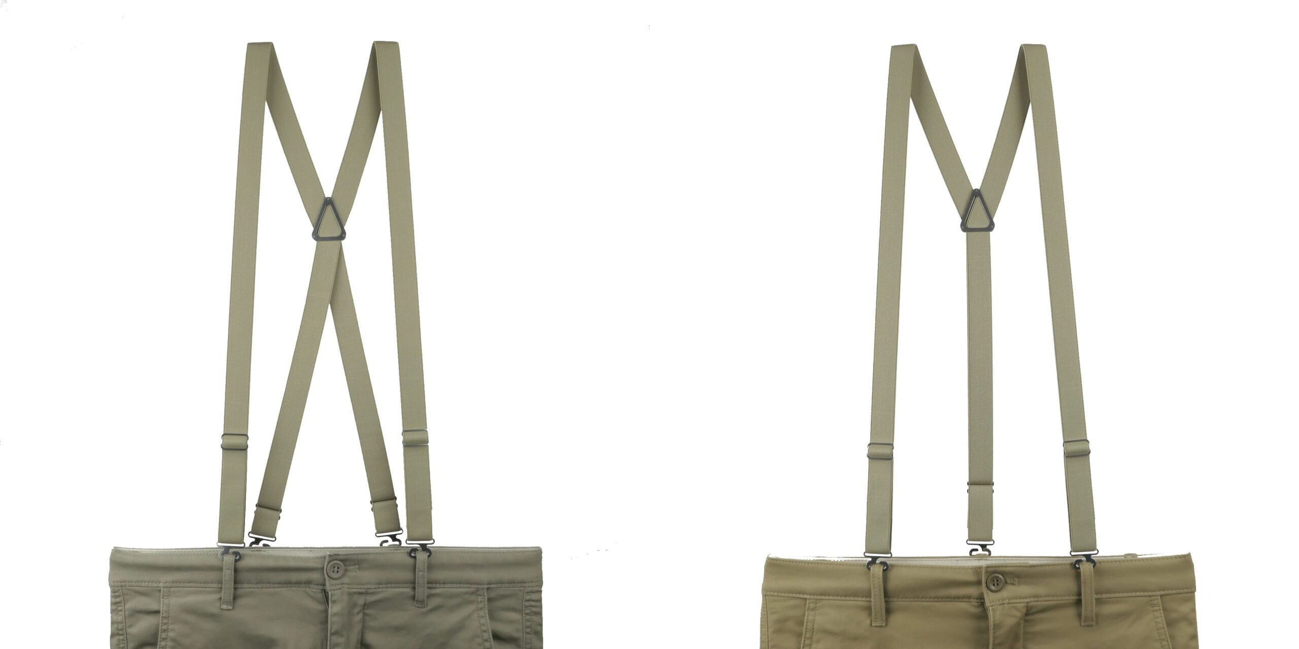 Meanwhile, an X-back suspender order can be switched to a Y-back style by removing an attachment and intertwining the resulting bare strap with the end that still had the hardware. This feature is possible because our men’s suspenders with belt loops have slide adjusters sized and matched to the straps to hold securely without any stitching.